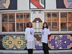 The headmistress, Mrs Beatriz Vernengo and Ms Tarrab in front of a wall decorated with Ndebele designs
