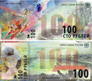 Russia issues a limited series of 100-rubles banknotes in celebration of the upcoming 2018 FIFA World Cup.