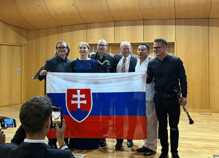 Ambassador Vladimír Grácz of the Slovak Republic welcomed members of the diplomatic corps, distinguished guests, and South African leaders to the intimate, modern concert hall for a memorable evening. He opened the event by introducing the Slovak Aurum Quartet, the only professional clarinet quartet in the Slovak Republic, founded in 2020 at the Conservatory in Bratislava. Its members—Albín Blaho, Šimon Štímel, Martina Lišková and Ronald Šebesta—are both graduates and teachers of this prestigious institution, and they perform in leading orchestras including the Slovak Philharmonic, the Slovak Radio Symphony Orchestra, and the Orchestra of the Ministry of the Interior of The Slovak Republic.