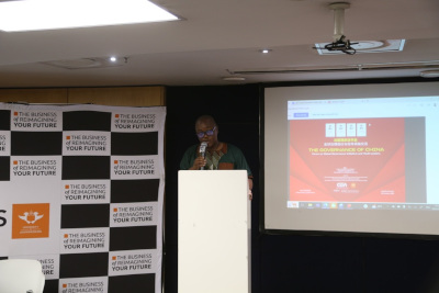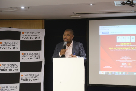 Busani Ngcaweni introduces the purpose of the panel discussion (SUN XIANG)