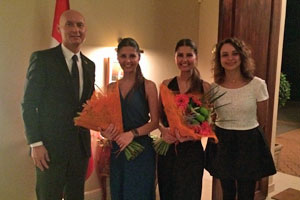 Ambassador of the Republic of Turkey, Mr Kaan Esener hosted Piano Duo Ferhan & Ferzan Önder for a recital at his official residence in Pretoria. He is pictured with the pianists and Nazlı Başak Esener (r). While in South Africa they performed at the Johannesburg International Mozart Festival.