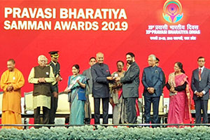 The Pravasi Bharatiya Samman Award is the highest honour conferred by the President of India as part of the Pravasi Bharatiya Divas (PBD) Conventions on a Non Resident Indian (NRI), Person of Indian Origin (PIOs) or organisation or institution established and run by NRIs or PIOs.