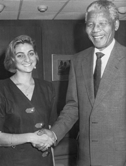 A photo of H.E Ambassador Ana Luisa Fajer Flores with Nelson Mandela, former president of South Africa stands on her desk as a treasured memory. As Director for Africa in Mexico’s Ministry for Foreign Affairs she was responsible for planning and co-ordinating Mandela’s visit to Mexico in 1991.