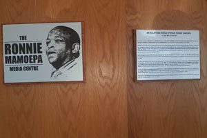 In his memory The Ronnie Mamoepa Media Centre was unveiled by members of the family of Ronnie Mamoepa who were gathered among long term colleagues, friends, members of the media fraternity, and the Minister for Communications Mr Jackson Mthembu at the Government Communications Building (GCIS) in the City of Tshwane, South Africa.