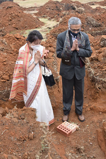 Pictured right are High Commissioner Jaideep Sarkar and Minako Sarkar at the brick-laying ceremony (Photo: twitter)