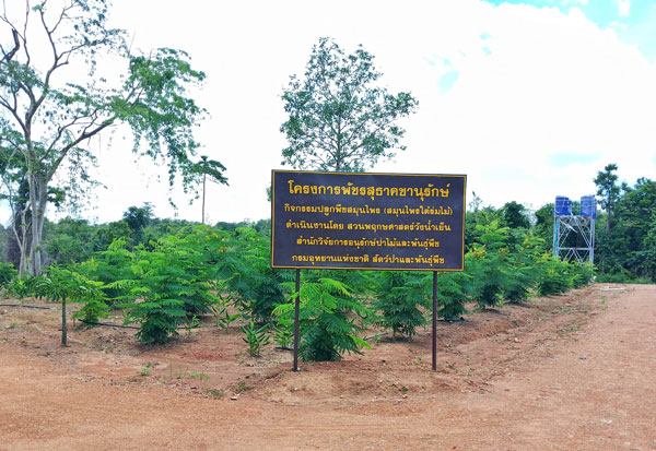 Photo: Designated area for planting medicinal herbs at the Bajrasudha Gajanurak Project in Baan Sa Luang, Sakaew Province (Source: Gajanurak Baan Sa Luang Faceboook page)