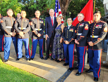 Todd Haskell, Chargé d’Affairs of the United States of America to South Africa and Jennifer Haskell with members of the Marine Corps