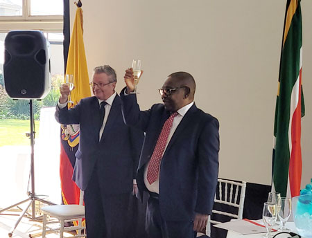 Minister Blade Nzimande and Ambassador Juan Larrea raising a toast at the celebration