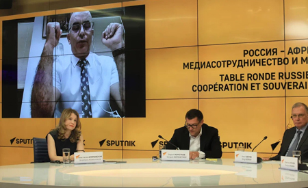 The discussion was attended by Sergei Kochetkov, First Deputy Editor-in-Chief of the Rossiya Segodnya International Media Group; Oleg Ozerov, Ambassador-at-Large of the Russian Foreign Ministry, Head of the Russia-Africa Partnership Forum Secretariat; and Svetlana Kukava, observer of the international TV BRICS network. Director General of the TAP News Agency (Tunisia) Najesh Missaoui; Roland Lumumba, son of Patrice Lumumba, national hero of the Democratic Republic of the Congo, and President of the Patrice Lumumba Foundation; Hassane Baba Diombele, Director General of the Radio and Television Office of Mali (ORTM); and Eric Ndongo, Director of Radio bonne nouvelle (Cameroon), joined the discussion online.