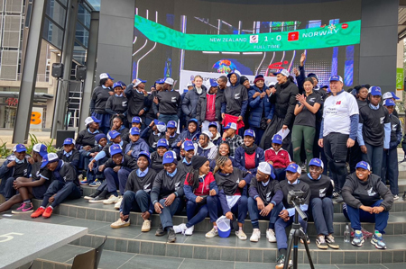 On a cold winter morning in Pretoria, South Africa’s capital, this riveting opening match between New Zealand and Norway was livestreamed on a giant screen. The New Zealand and Norwegian missions in Pretoria welcomed young school children to the screening who were excited to watch World Cup football.