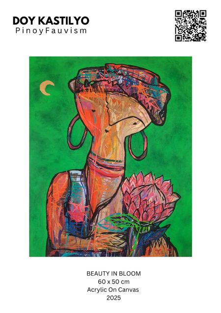 Doy Kastilyo’s ‘Rainbow’series celebrates the diverse narratives of South African people, art and culture viewed through the lens of “Pinoy Fauvism.” This movement is characterized by its wild colors and spontaneous strokes. His pieces celebrate the resilience and heritage of various communities. Kastilyo’s style is emotional and visually striking, aiming to provoke thought and cultural appreciation.