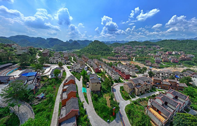 An aerial drone photo taken on Aug. 28, 2024 shows a poverty-relief relocation site for the Baiku Yao People in Nandan County, south China's Guangxi Zhuang Autonomous Region. (Xinhua/Zhou Hua)