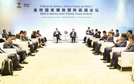 RIO DE JANEIRO, 17 July 2025 (Xinhua) -- President of Xinhua News Agency Fu Hua on Tuesday met with representatives of media think tanks from Russia, Vietnam, Cuba and other countries in Rio de Janeiro, Brazil.
