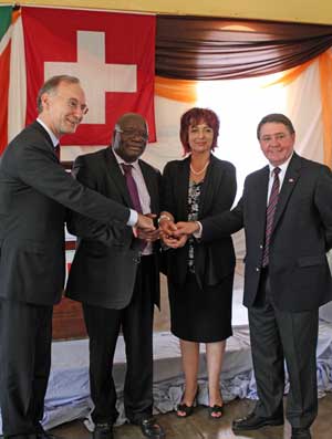 His Excellency Christian Meuwly, the Ambassador of Switzerland in South Africa, and Mr. Danie Meintjes (CEO of private hospital group, Mediclinic International) handed over medical equipment and furniture to the maternity ward of Elim Hospital in the presence of Hon. MEC Dr Norman Mabasa, Minister of Health for Limpopo Province on 30 November 2012.