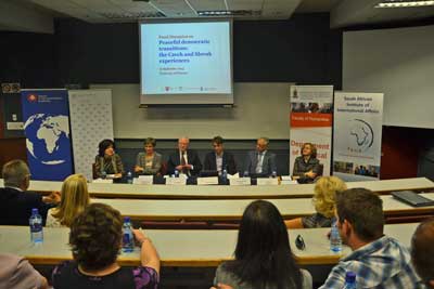 The panel included Yolanda Spies – University of Pretoria, Programme Director, Ambassador Blanka Fajkusova, Ambassador of the Czech Republic, Ambassador Alexander Ilascik of Slovakia, Dr Jakub Landovsky from the institute of Political studies Charles University, Prague, Dr John Mare, Independent Consultant and Special Adviser and Elizabeth Sidiropoulos, Chief Executive of The South African Institute of International Affairs.