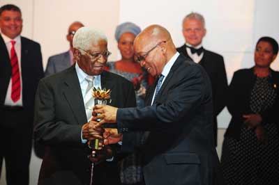 President Zuma hands Dr. Sam Motsuenyane the “Lifetime Achievement Award”